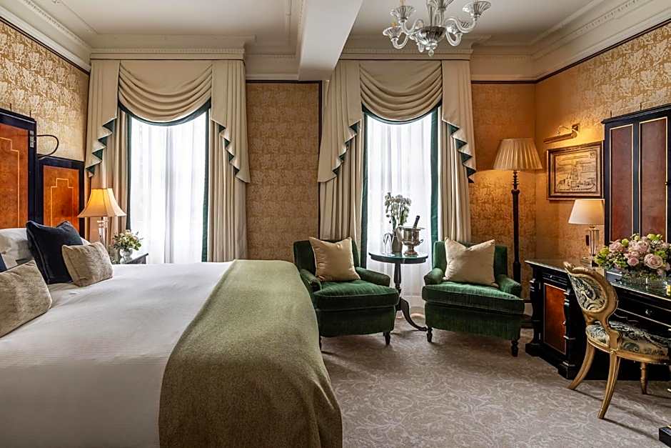 This luxurious suite features a king-size or twin beds, as well as a seating area, a hallway and a marble bathroom. It offers views over London's peaceful Victoria Square or the Goring Gardens.